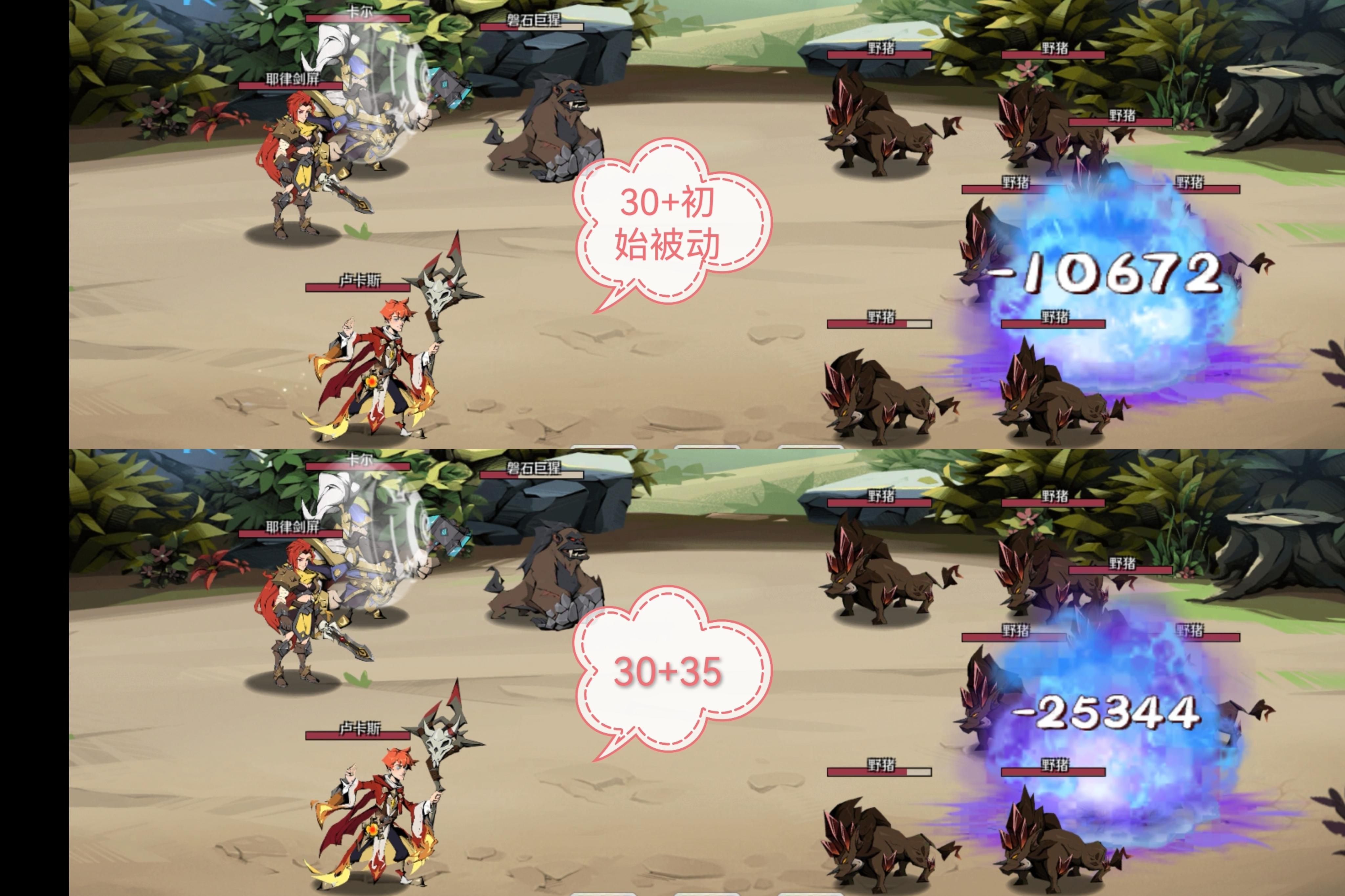 同样的装备,打同一只猪。不同的主动技能+35级被动=伤害都能翻倍