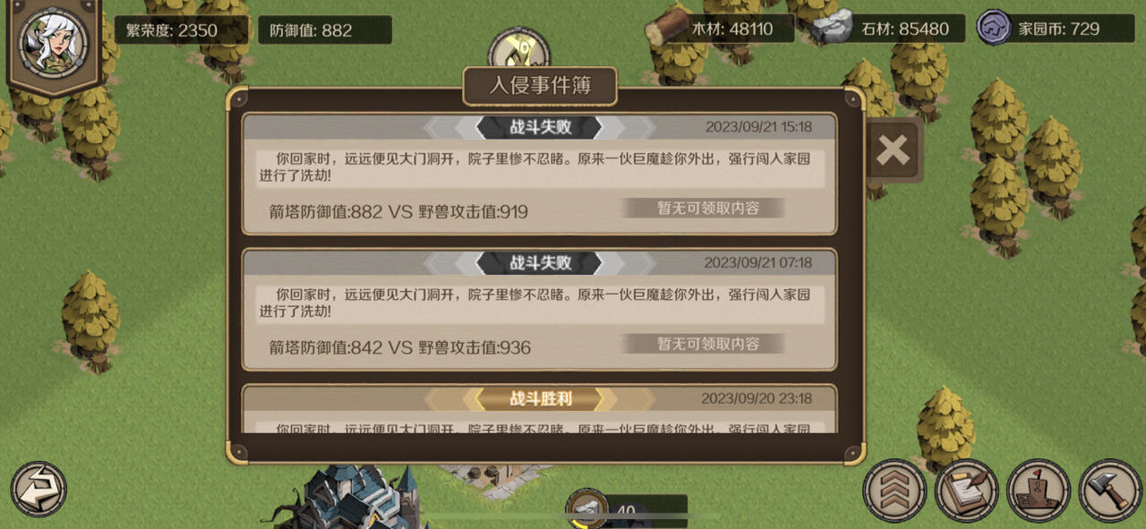 6级城堡+双6级防御塔+双48级人物守塔,打不过怪物入侵,48级是我最高的人物了,是不是数值有问题?