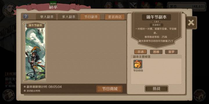 活动时间:5月30日-6月2日结束,为期4天。活动内容:1.端午节寻宝活动期间将在前四个大陆第一个地图范围内,随机掉落宝箱,每日掉落一个,玩家可在已开启的指定地图内寻找宝箱,并免费开启!备注:(1)各大陆第一个地图包括:暮色之森、传奇港口、亚兰海湾、金沙海湾;(2)宝箱拾取后第二日才会刷新出新的宝箱,每日要记得找一找惊喜宝箱哦。 2.端午节节日副本活动期间,挑战成功节日副本,即可