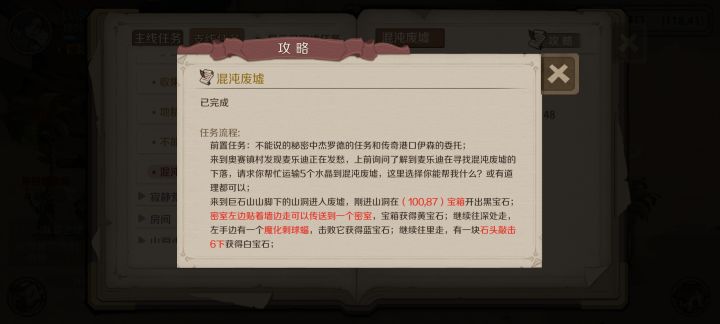 完成主线击败千变者下一步是"修正的时间"任务,回到极光之湖。北边有一个坟墓,他会问你丢的什么钥匙,随便答,给一把铜质钥匙。然后来到祖螺洼地原来结晶塔那个地方也有一个坟墓,下去以后就是墓地洞穴。南边考验力量,洗点,加力量,多少不知道,先加一半不够再加。给1颗1级还是2级红宝石;西边考验魔法,加魔法点,给1颗进化丹;东边考验敏捷,加敏捷,给传奇药剂;北边考验体质,加体力,给锻造之锤;反正缺什