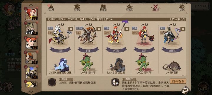 大家好,我是流逆。今天是公测的第七天,附上我现在的阵容和更换顺序!目前在第三大陆 倒数第二张图。目前阵容主角(狂战)+卢卡斯(火法)+猎人(奥托林)+巴里(神射手)+卡尔(圣骑士)。由于是一元,所以v5角色没机会获得。目前阵容是我选择的全200根骨随从阵容。商船1500金币角色,我依次购买的是 卢卡斯,奥托林,卡尔。巴里是目前唯一200根骨且免费获取的隐藏随从(刷食人魔+蜥蜴族好感度,可在黑暗
