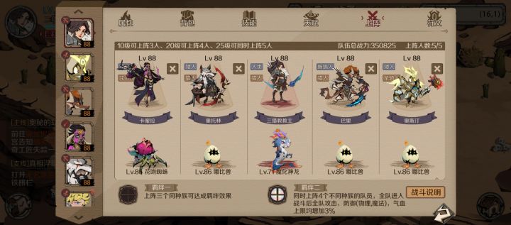 队伍搭配:狂战士(主角),巴里(猎人),奥托林(神射手),卡尔(圣骑士),阿塔莎(光明牧师)前期可用任务送的巴尔,缇娜,和射手(转猎人)过渡角色获取顺序推荐:巴里蜥蜴人好感度获取,卡尔1500金币购买,奥托林1500金币购买,阿塔莎1500金币购买我的月卡党,月卡跳过二次战斗画面很推荐金币免费获得途径推荐:1宠物基因解锁成就(普通宠物1600铜币一次,一直重复操作就好,共48万铜币,一共可