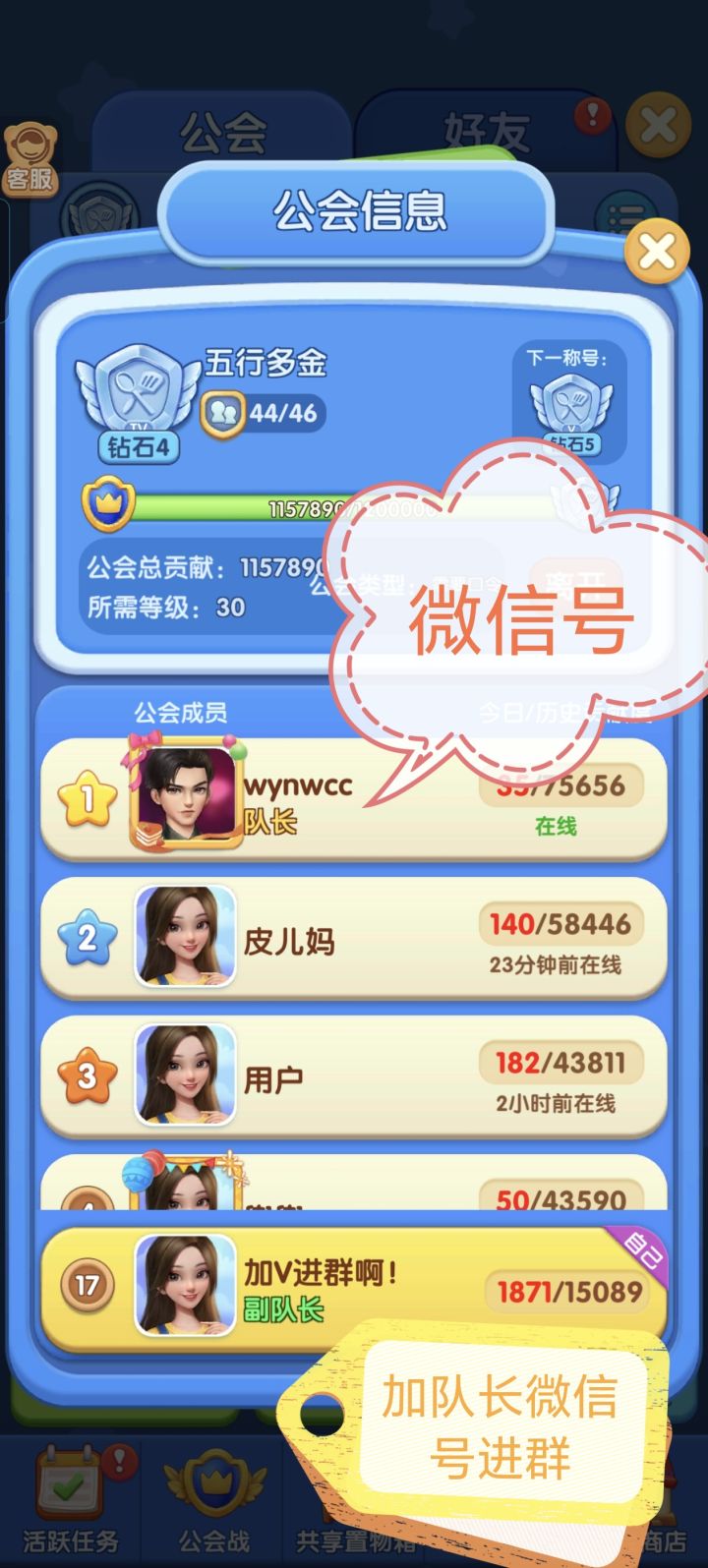 黄金公会招活跃新人,公会不要求完成公会战积分。轻松玩游戏,绿茶请走开!有兴趣的请留QQ私聊加入!