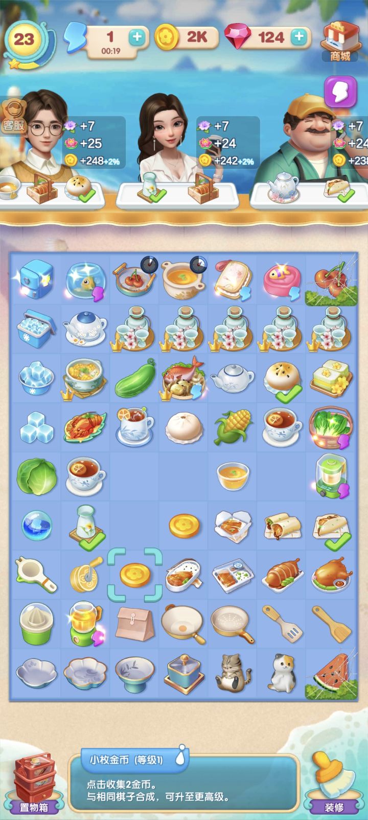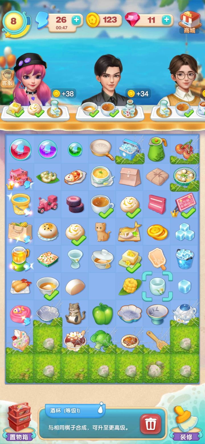 八级智能萃茶机确实有点坑,五六级的茶没有出几个,大多爆的酒杯,爆酒杯的几率占了三分之一,太浪费体力了。我现在看到高级茶壶的任务就头疼,要n多体力才能合出来。建议游戏方还是调整一下,体力本来就不够用,这样一来太恼火了。