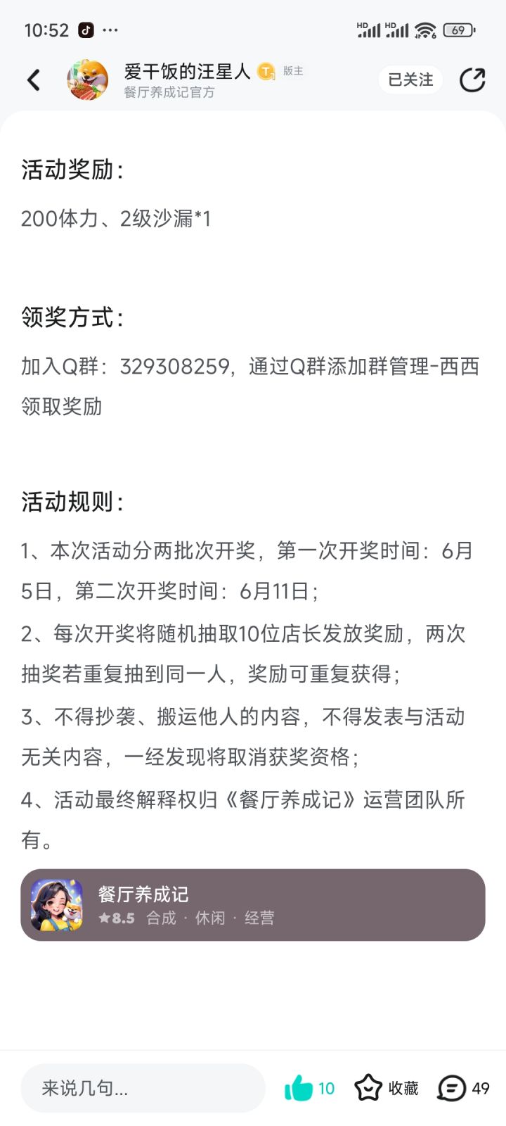 最喜欢的活动:争分夺秒💰喜欢的缘由:在24小时以内,收集到1800的金币,最终奖励为一个万能石,在收集金币进度的同时,中间还可以获得不同的高额体力(这些体力,能起到很大的作用,因为消耗订单的前提,还是需要很多体力来合成)。整体来说,这个活动对于我们这些店长来说,体验感都是很不错的,无人争分,自食其果 #餐厅养成记