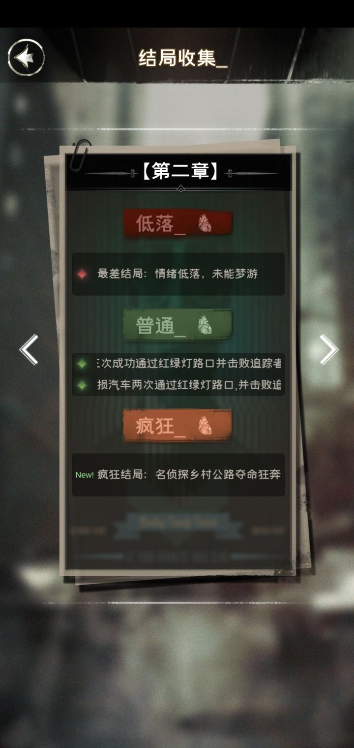 第二章结局达成很简单成就:调侃者与酒厂老板的对话中触发调查酒瓶→他喝让我醉了不作死就不会死酒吧门口三次搭话大个子刨根问底酒吧老板毒瘾犯后追问罗宾过度冷静逃跑中向后方跑,躲在一个包厢,仔细观察包厢,关上暗门,待在原地一会儿贪吃蛇在酒吧院子里玩对对碰游刃有余在院子里对着大个子漂移