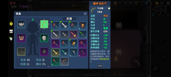 本来我近身打,不停磕药还是很容易暴毙,法术伤害也不高还慢,炸弹还会被困住把自己炸死。自从发现这把弓,半分钟唰唰唰,boss大螳螂还没召唤几个小弟就被我射死了,68的基础伤害+15伤害暗影箭,这把弓还能自动瞄准,boss在屏幕外都能哐哐哐掉血,爽死!这把金虹弓怎么得?攒277根暗影箭找地牢二里面右边的矮人换后室谜图,之后兑换出来,再配上这277根暗影箭,用不了五十根就把大螳螂射死了!#游戏讨论#攻略