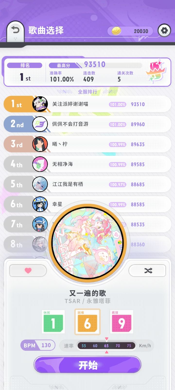 我这种菜的也只能玩玩简单了,10级以上连fc都做不到,这次能打出完美闪避的障碍都擦了,不能的也都是那个粉色的次判定了,有没有入这个谱子可以比我更高
