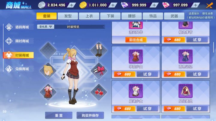 本来只充了个月卡,手痒合了第一件衣服,直接就成。第二件二环三次成。第三件腰带一次成。后两件惨不忍睹,裤子和发型起码花了四百才出。给小伙伴们做参考。慎重
