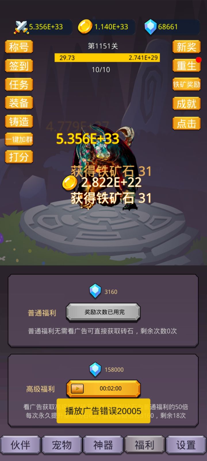 后期搭配 “自动点击器”通关很快每天5次重生次数不够用呢!