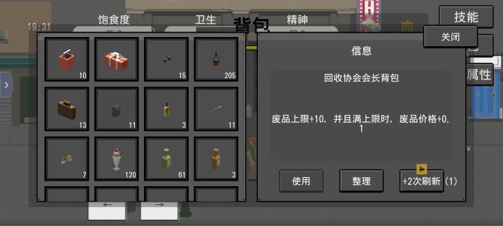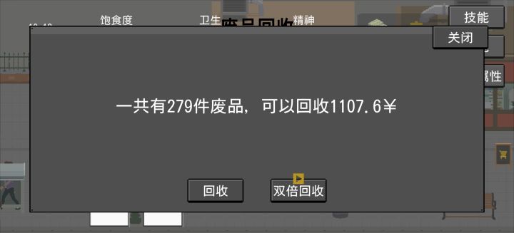 无论前期还是后期,都只捡垃圾(垃圾满了在卖),技能选择增加垃圾售价,其次选择增加捡垃圾数量,移速也选几个,后期一天垃圾可以要三到四次,价格如下图。 前期最好进收容所,因为省钱