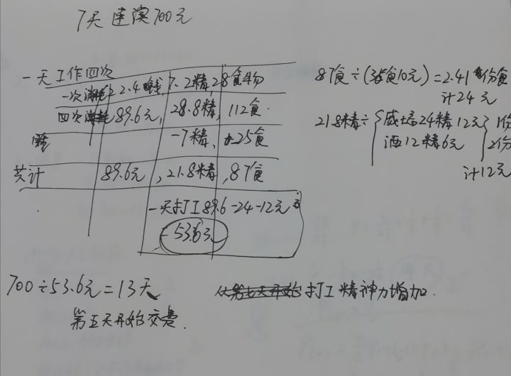 结论,这个游戏不看广告没办法通关。玩了3天还是死在精神力上,于是我做了一个表格。每天打工平均挣得89.6元,减去食物24元精神力补充12元,每日净收入53.6元。7天连续700元,就需要13天打工挣钱。于是你需要在第7天开始缴费,才能连续交满7天,中间断了从0开始。然而游戏从第五天开始打工消耗精神力成倍增加,需要花大量的时间和金钱补充精神力,13天无限延期,精神力继续增加,最后饥寒交迫死
