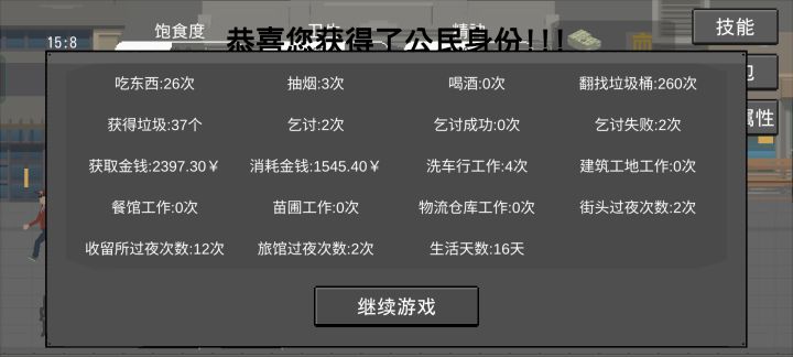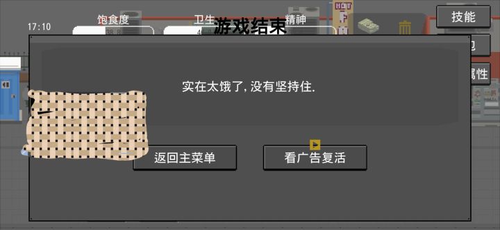餐馆打工没跳出结算界面,所以不小心手抽多点了一下,然后扛着个位数的饥饿度冲到前面吃饭(点开餐厅界面还剩0.8),然后就成了个饱着的饿死鬼