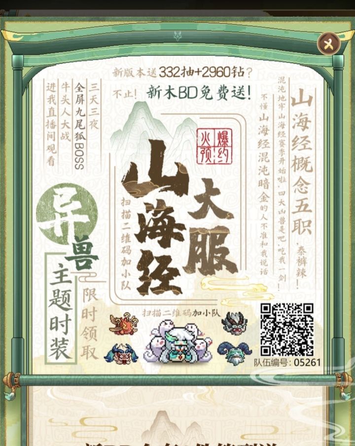 四大凶兽正式加入勇者山海之旅!加入我的山海经小队,四凶兽组队头套限时领:https://wdyz.r2games.com.cn/act/reserve/?inviteToken=E2CN3dCT02vy