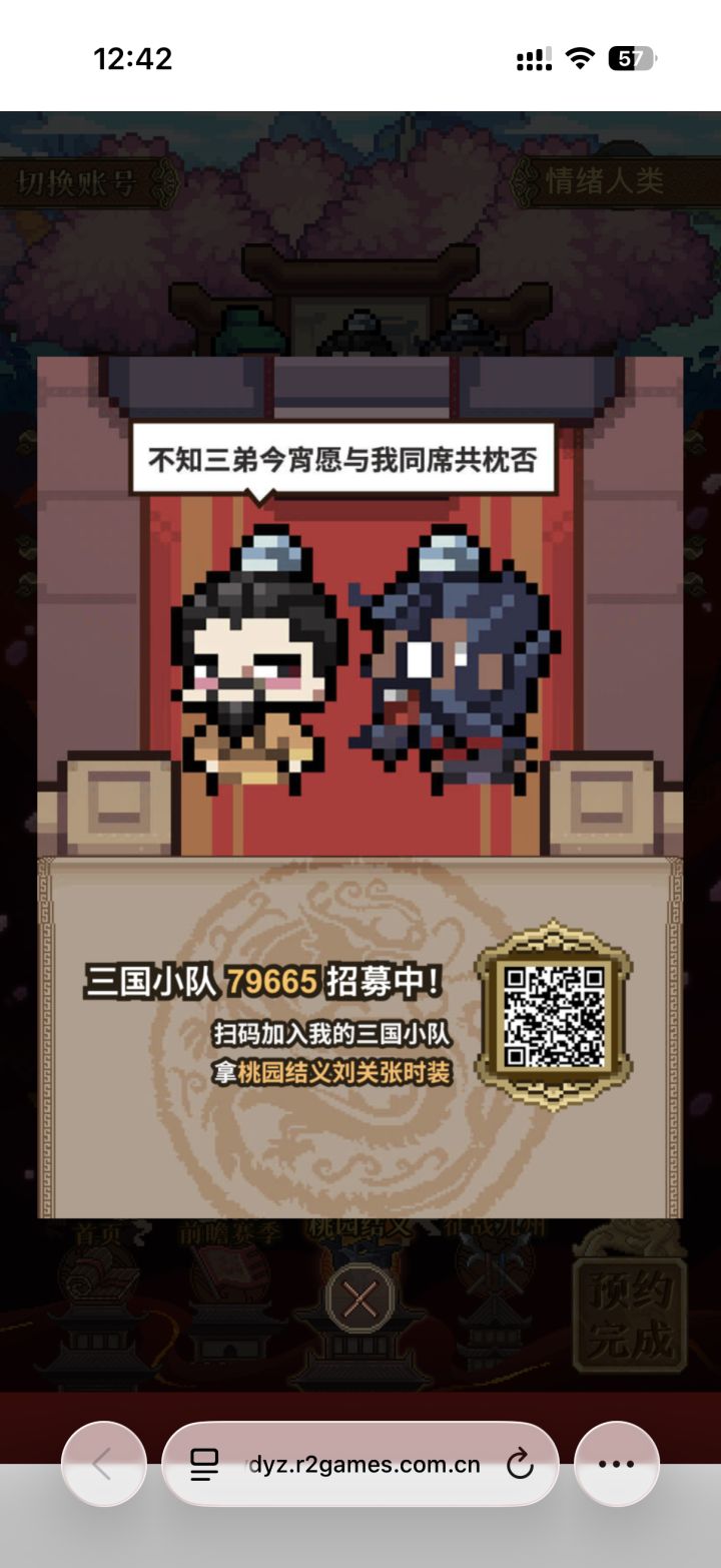 三国小队59248招募中!加入我的三国小队,拿桃园结义刘关张时装https://wdyz.r2games.com.cn/act/threekingdom/?inviteCode=59248