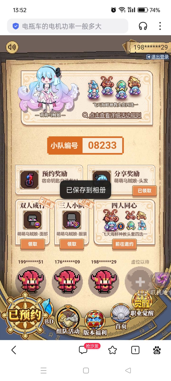 加一下小队 领一下奖励#