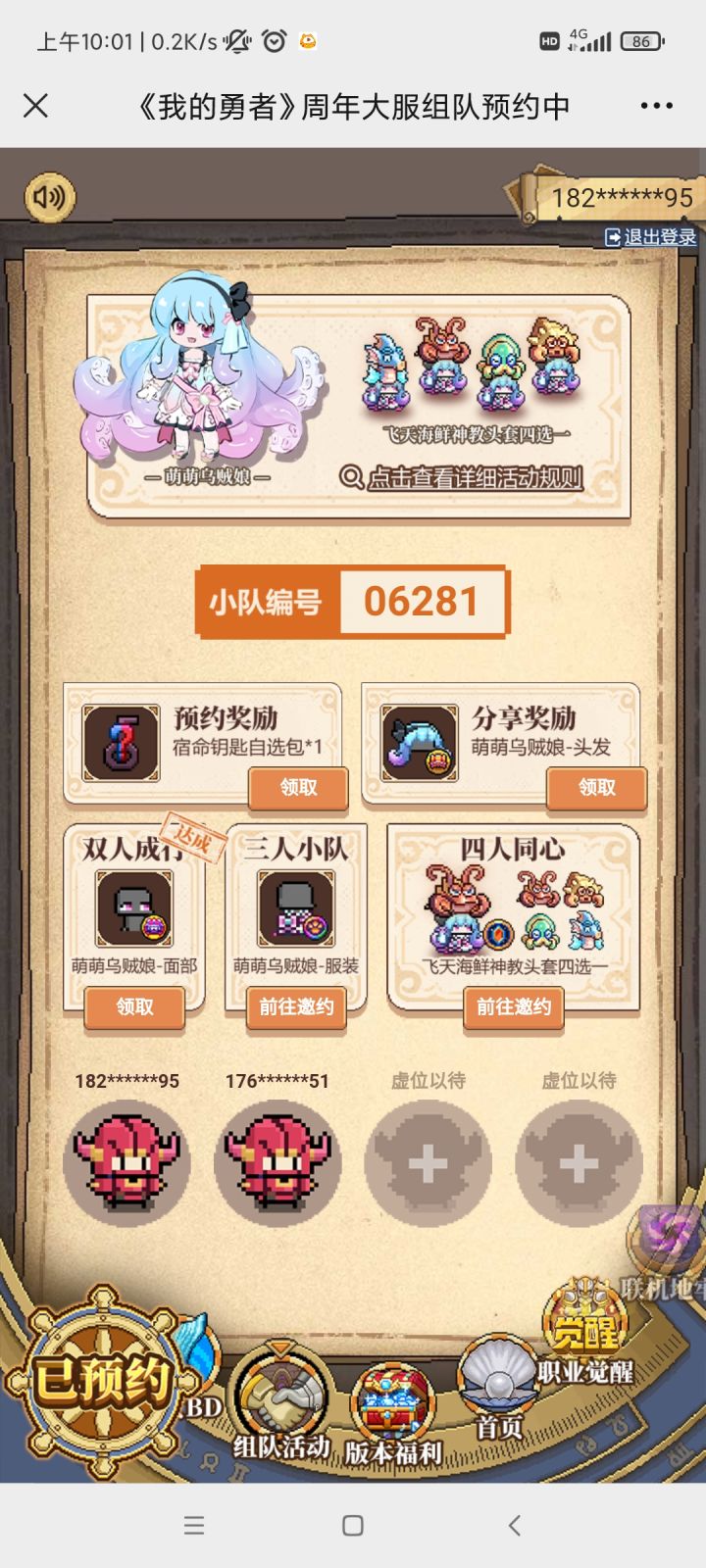 组队领奖励,还差俩人