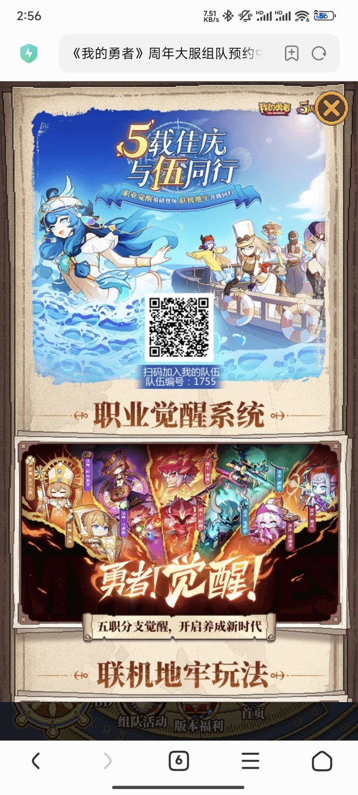 《我的勇者》周年大服组队预约中! https://wdyz.r2games.com.cn/act/FifthAnniversary/mobile/?type=6&inviteToken=2RQ7yfAWlWr5