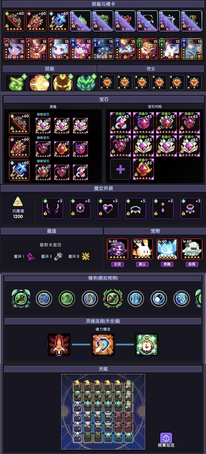 2025·7·16【一图流】要求:攻速任意,冷却50%,护甲穿透10300(以满级副本为准),暴击率157%(以满级副本为准)【目录】一、【关卡介绍】二、【暗金装备】三、【武器】四、【魂卡】五、【天赋】六、【咒文】七、【宠物】八、【技能】九、【符文】十、【魂系】十一、【魂树】十二、【星盘】十三、【魔女外装】十四、【炼金与小屋buff】十五、【宝石】十六、【公会