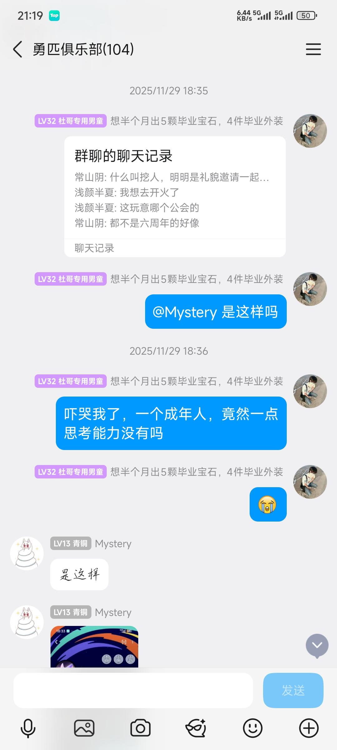 说实话我感觉挺无聊的那个瓜那个my是爱莉希雅的吗不是吧,先说说这个林冲公会矛盾,图1就是林冲公会前任会长,在2025年9月16日非说我挖了他们人,我当时说了一张图10块然后又拿不出来证据我也挺无语的其实。还有图二图三光my这个人说白了,你一个不了解事情清楚靠自己那无能的头脑直接站队吗那很会了忘记自己之前怎么跟我道歉的吗,发红包我都懒得领你的然后讲一下图4图5图6图7图8爱莉希雅的事情吧,事情起