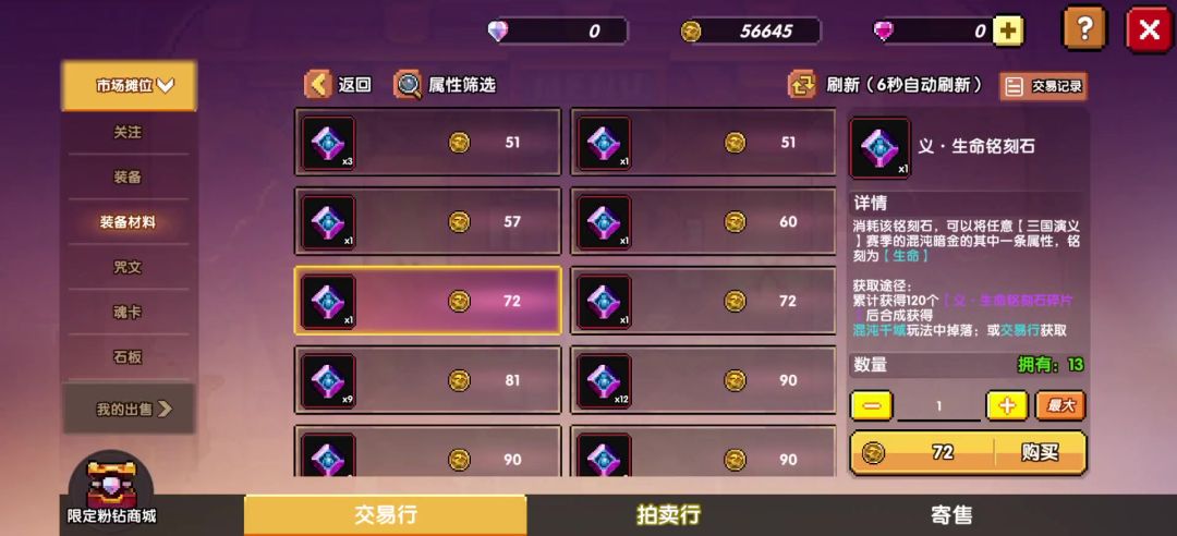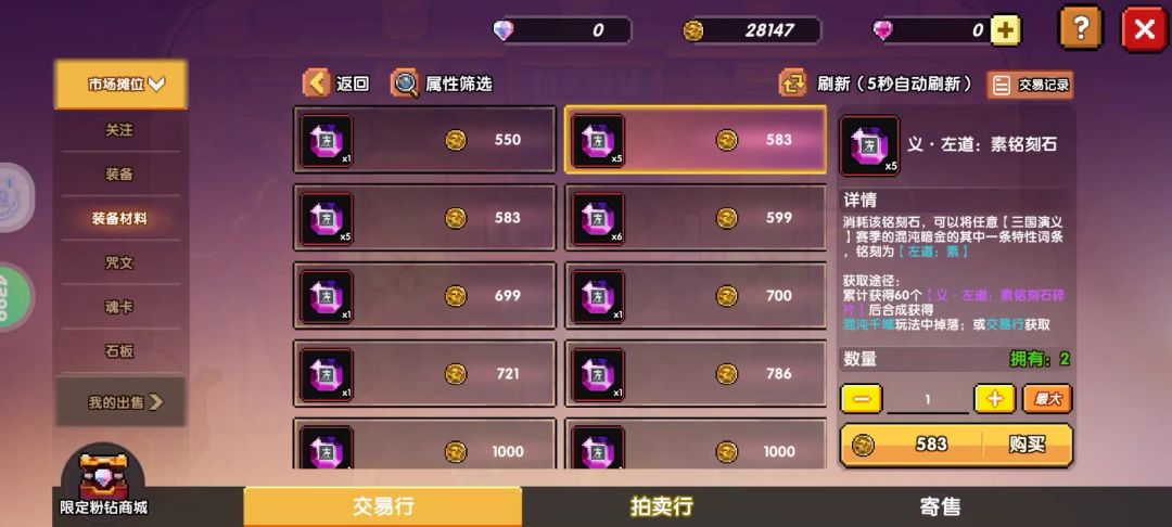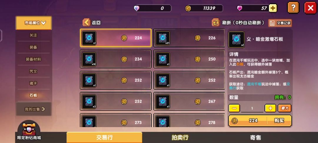 不能购买铭刻石,词条和特性都无法购买,购买后一直显示未售出,不扣钱也不到仓库 #问题反馈