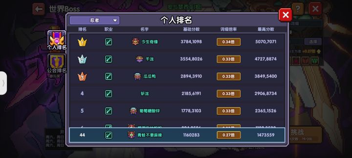 平时木boss就是随便打的,没养火,所以拿冰忍打,结果这都能进前50,那么大概有两种可能,火忍垃圾到当时很少有人养,或者火忍的技能垃圾到很多人都不愿意用