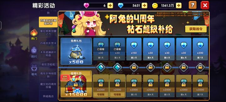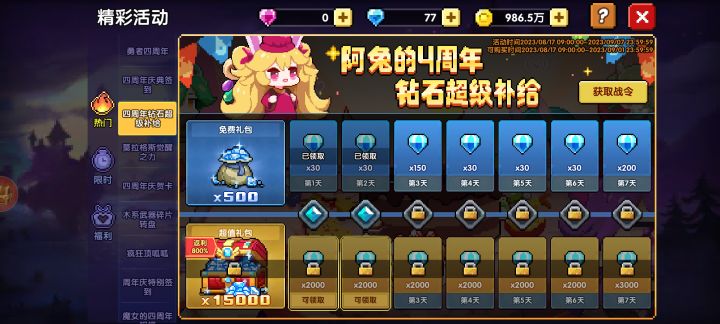 四周年钻石超级补给有问题
