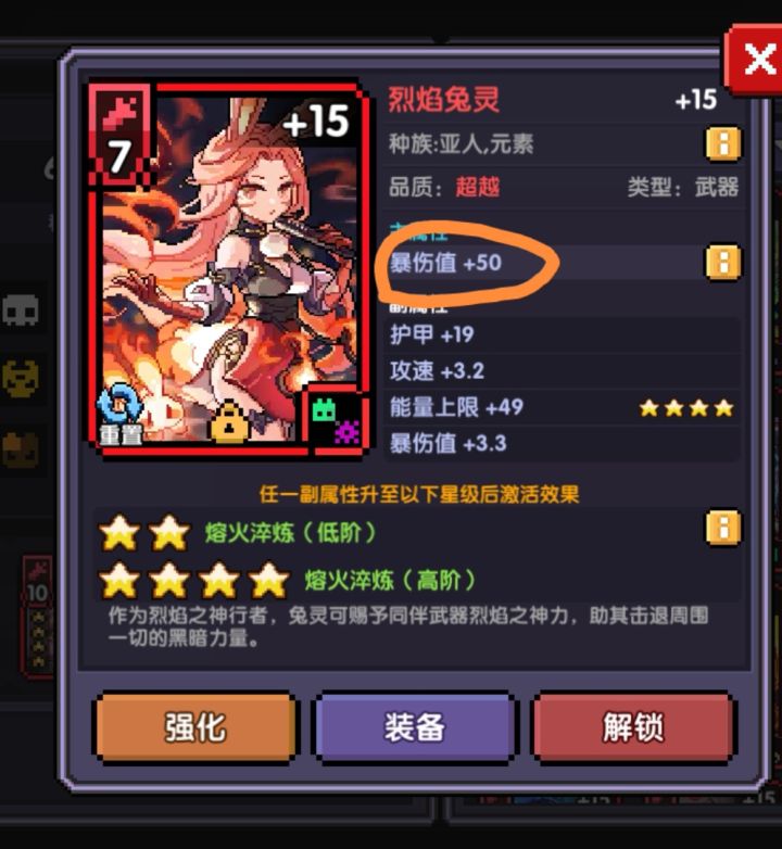 今天差点把我的兔子卡给喂了,词条改了名字真的很容易把这两个弄混,把爆伤值改回暴击伤害吧或者改成暴击伤害值也行,真的容易失误操作