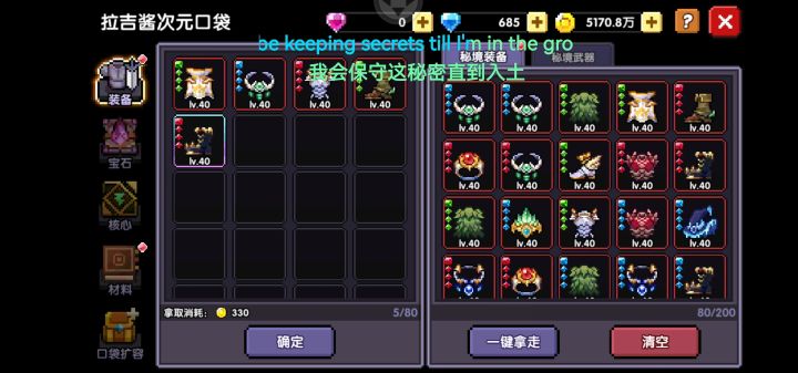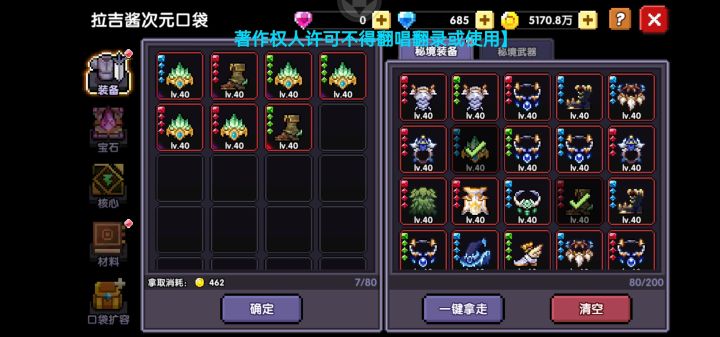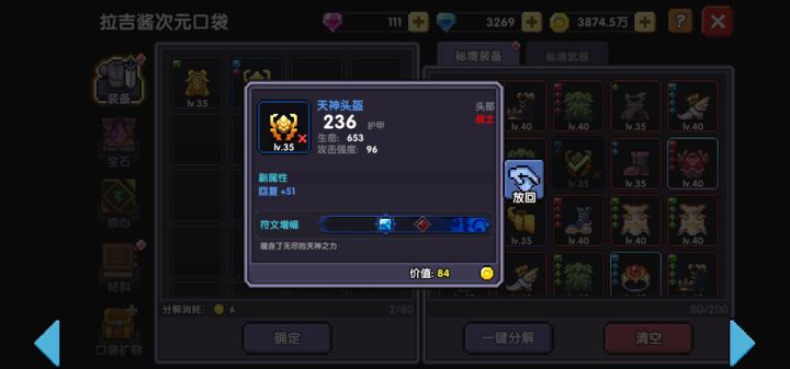 #我的勇者 如视频所示,全部选不限才能分解老装备,但凡有选一下觉醒1或者是专属1的都不能分,合着你更新出这个来,就只为方便检查玩家仓库情况呗? 我打完装备不小心领到宠物探险了,然后我先把不要的装备一键分解,然后再打开手动调成全部不限,等分完了,再调回去,比更新前还要恶心,更恶心的是就更新之后大部分一起玩的,都反映出货率太低了,比背包更新前低太多