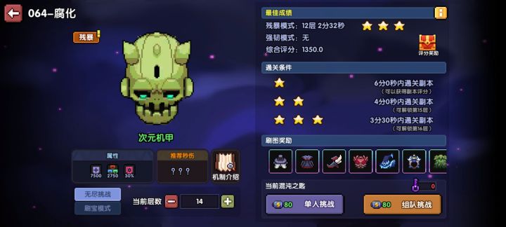 混沌064-腐化,这一关镜牧伤害有严重丢失的情况,具体情况是超脱(橙色)技能带动的虚点,它基本上是打不到的