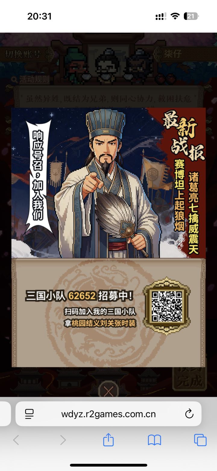 三国小队40129招募中!加入我的三国小队,拿桃园结义刘关张时装https://wdyz.r2games.com.cn/act/threekingdom/?inviteCode=40129