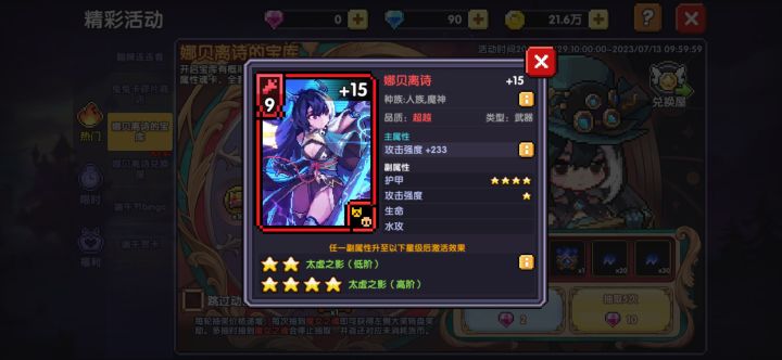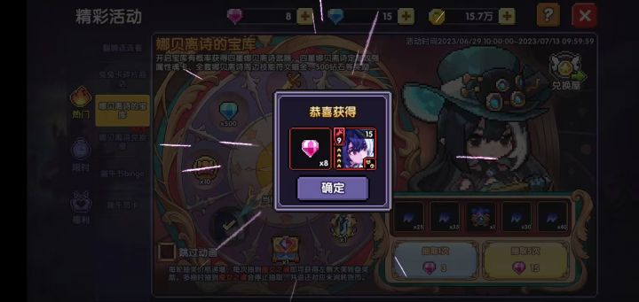 自选箱七十币选了一颗炼金石,百抽保底又抽出一颗…… 觉醒石 又在百币活动和本期“六幺八狂欢”商城活动期间,总计入库三颗; 那么,接下来我圣辉牧师这一路,打算就“天上之石”当副手挺进双条恢复,随后把钥匙弄齐再散做一把圣剑,在圣剑煅成之前,还有一副手位有余下,就以这一位作考虑,长此以往攒一攒白武器币和金武器币,届时水到渠成,库里的限定武器箱开一个取份冰雪节的限定,韶华和炼金石搭配辉光的这一套