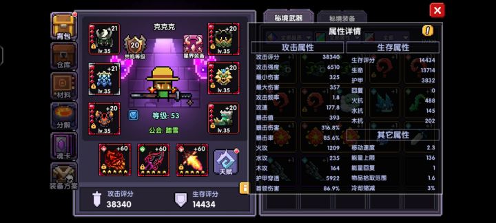 萌新第7天,接下来应该去慢慢搞魂卡和宝石了吧,防具5个都带都带橙词条了 就武器还没洗好