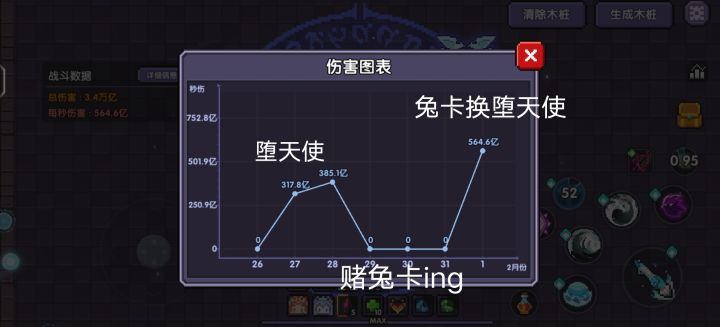 怎么说呢,虽然原来堕天使卡属性就不太好,但换了兔卡,这提升不是一点点唉,秒伤最高能到620亿左右。(现在在赌堕天使,看看换个好属性哪个更好用)