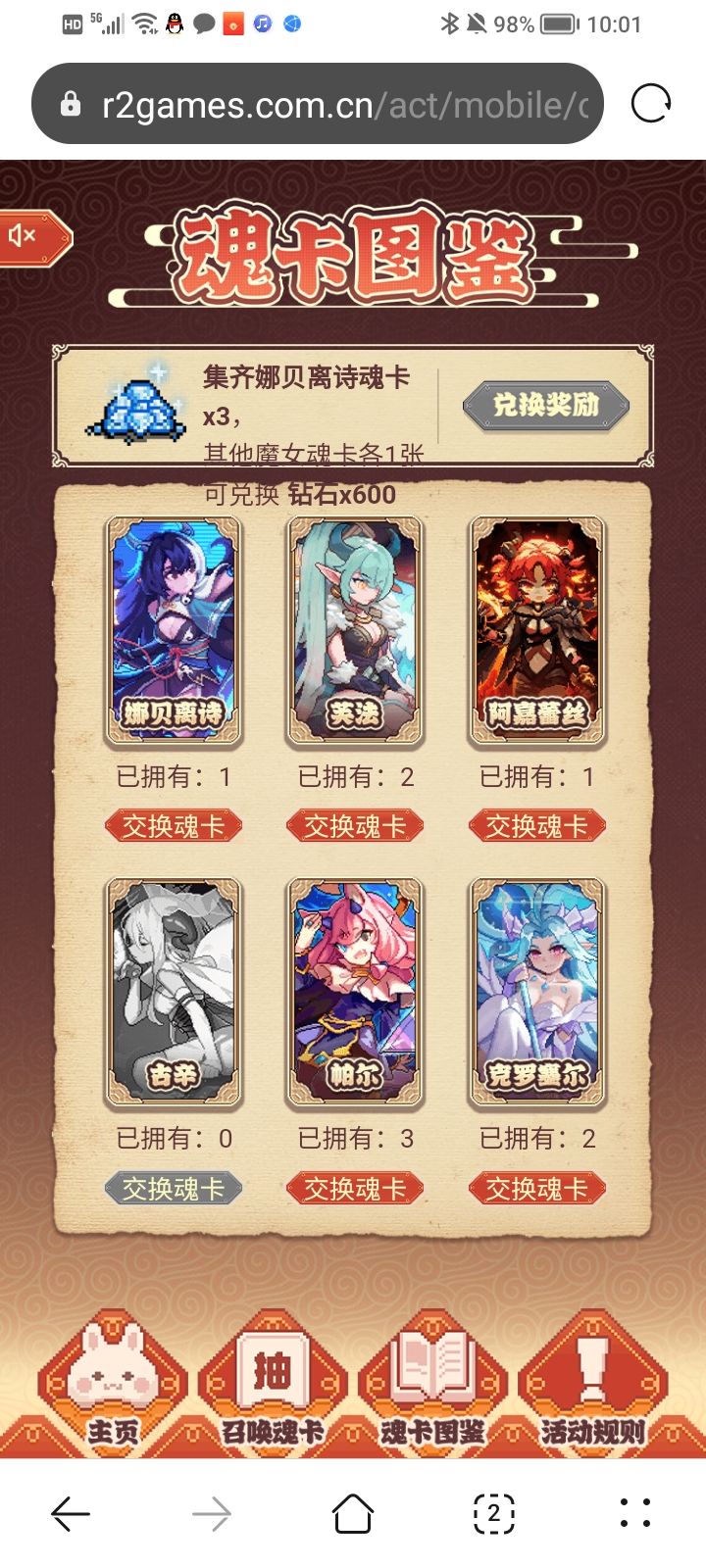 帕尔换娜贝《我的勇者》春节集魂卡,娜贝离诗给你送钻石!我想用帕尔魂卡与你交换古辛魂卡,https://www.r2games.com.cn/act/card2023/4485967991?exchangeToken=qgSBhiKnOIpCMzjuiwOJ