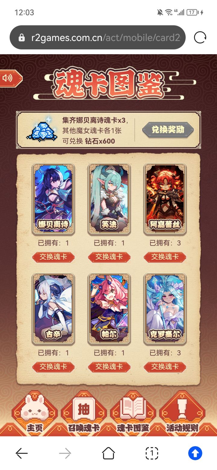《我的勇者》春节集魂卡,娜贝离诗给你送钻石!我想用古辛魂卡与你交换帕尔魂卡,https://www.r2games.com.cn/act/card2023/3366371030?exchangeToken=YgmJeHuinoNtDueksCbx