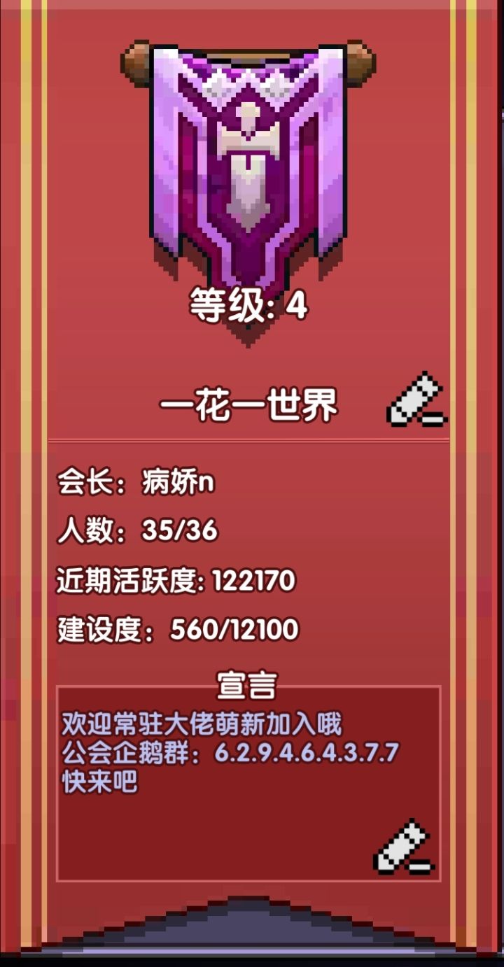 欢迎各位萌新与大佬加入哦,我们公会内环境和谐,会员幽默风趣,期待大家的到来!作为一个萌新,希望同区大佬们多多打扰,多多分享游戏经验呢!大家可以加我好友一起游戏哦!希望各位宝宝们欧气满满!