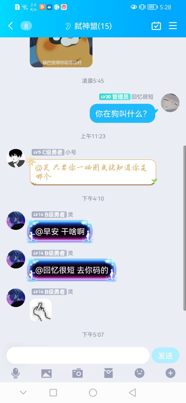真的不得不说一下这种人了 叫你们打个裂缝说我在那里狗叫 首先你不打也好声好气的说一下 一上来就爆粗口 我这是招你了还是惹你了 我也说你爱打不打 还有就是我身为一个副会 叫你们打一下裂缝这也没什么吧 叫什么叫啊 真的是爱打不打遇到这种人下次直接踢了 虽然说我公会平平无奇 一个低级公会 但是你也不至于这样 真的忍他很久了 26区的人公会你们看到这个人直接踢了就行 留不得 还会咬人 id765854