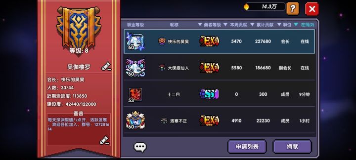 安卓九区吴迦楼罗招人。 我们一直追求的是活跃,不要求你多优秀,多厉害或者是柱子,但求你能在玩家逐渐减少的时候,能够报团取暖。