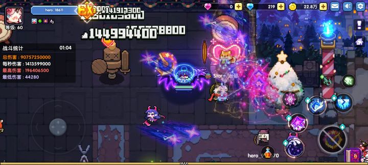 怎么没更新呢,那就继上次再发个打桩图,星星法伤害还是可以从4亿到14亿了,但是容易暴毙啊,有人建议我把那个减伤天赋给点了,但是怕没蓝,唉。