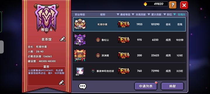 差贡献升至7级的公会,招收活跃人员。