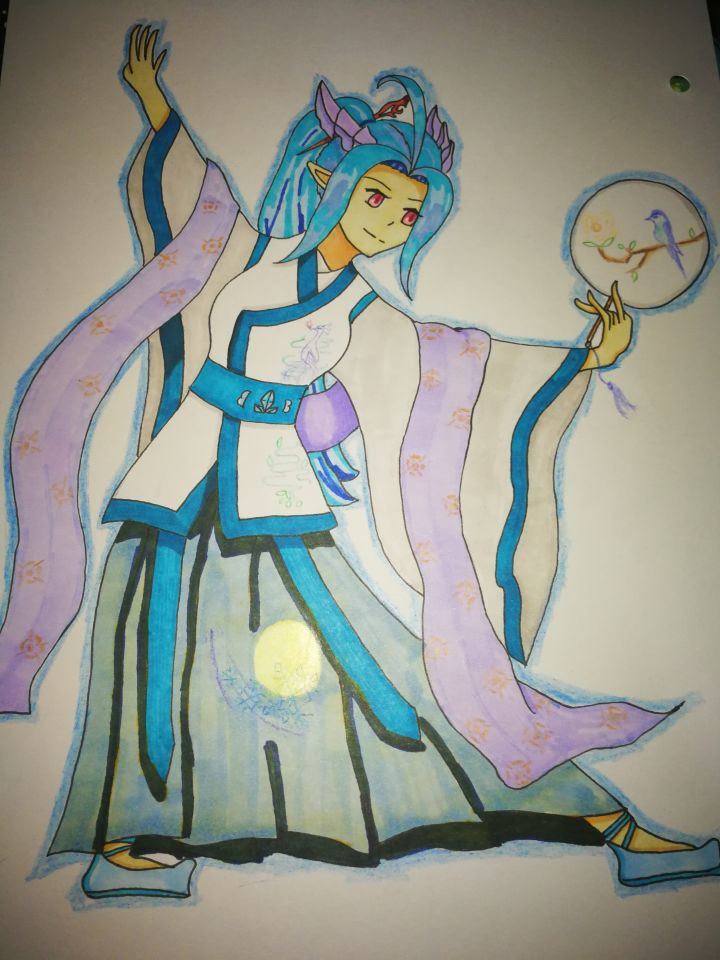第一次原创作品,以前都是临摹,现在发现原创真的难,需要找大量素材,然后晃荡晃荡脑袋瓜苦思冥想动作服饰表情配色等等,虽然这副画耗费了我近七小时全身心投入,但画完那一刻自豪感油然而生,或许这就是我热爱绘画的原因。最后,克罗塞尔是我的!!