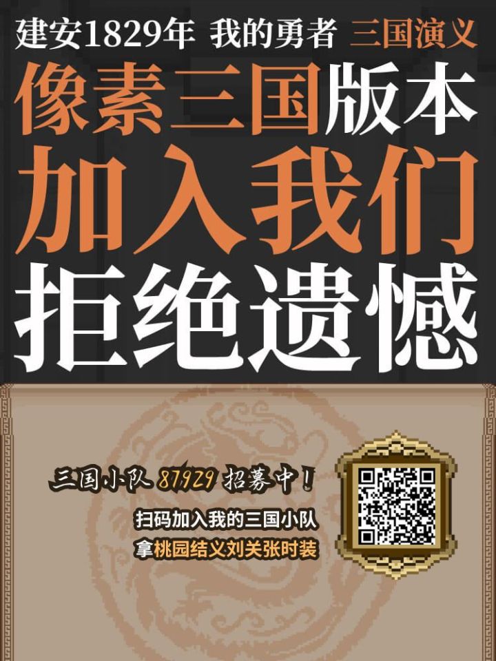 三国小队87929招募中!加入我的三国小队,拿桃园结义刘关张时装https://wdyz.r2games.com.cn/act/threekingdom/?inviteCode=87929