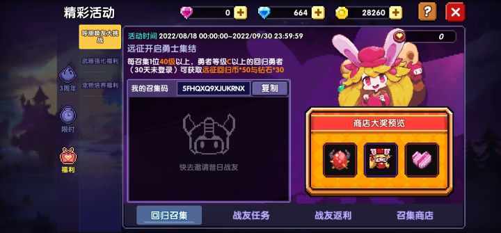 呃呃《我的勇者》捣蛋魔女佛拉丝隆重登场,全新时装,炫酷机甲,等你体验~回归玩家可在(精彩活动-战友的回归召唤页签)填写召集邀请码还可领取专属礼包: 5FHQXQ9XJUKRNX