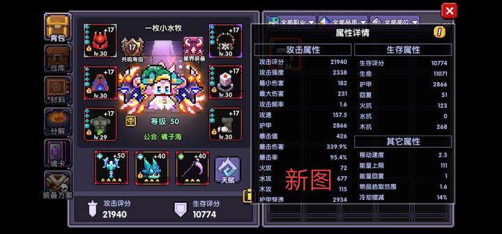 700多万了,提升好大😋。原本是450万左右,我把一些装备的词条洗为水攻😈(以前不想洗,三蓝,橙回复,火炕,但是洗了, 大部分都是蓝色词条,一个紫色),再花点暗金抽下装备得到个穿透鞋和然后宝石缝缝补补,主体思路就是稍微削落一下其他属性提水攻,接着调整下魂卡和升级魂卡(没魂了,主要想拉一下水攻。现在看来还好。没消耗多少资源,150个混沌石左右😁还有钱(这次活动的魂卡任务,超越卡我是随便买的,看到就买(现在想想,好亏😐,就想着完成任务),还差两个任务没完成