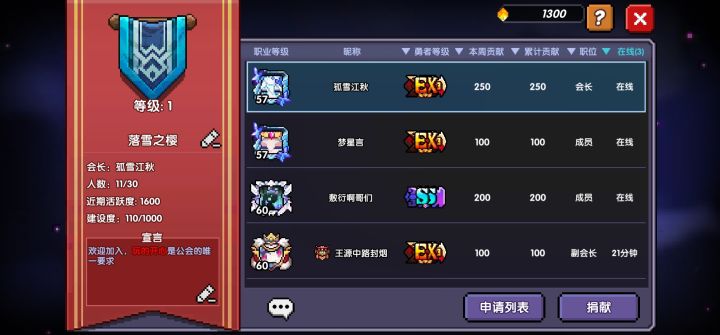 落雪之樱公会招人新人公会没什么要求,萌新和老玩家都可以来支持帮助老玩家做康复训练(介绍功能)支持给萌新提供帮助(提供钥匙和说明)同时,工会不强求每日任务(但还是希望能做一点),并且,觉得自己康复了(玩明白了)的,随时可以退,也可以帮助公会里一起培养新人这是QQ交流群[游戏通信群]:936308669不需要是公会的成员,只要愿意,或者是想加入的,随时可以加入,欢迎讨论,当然,公会成员只要不想加入,也可以无视加群的指令总之,希望有人来,并且祝大家都能,十发出红武,单抽出橙技
