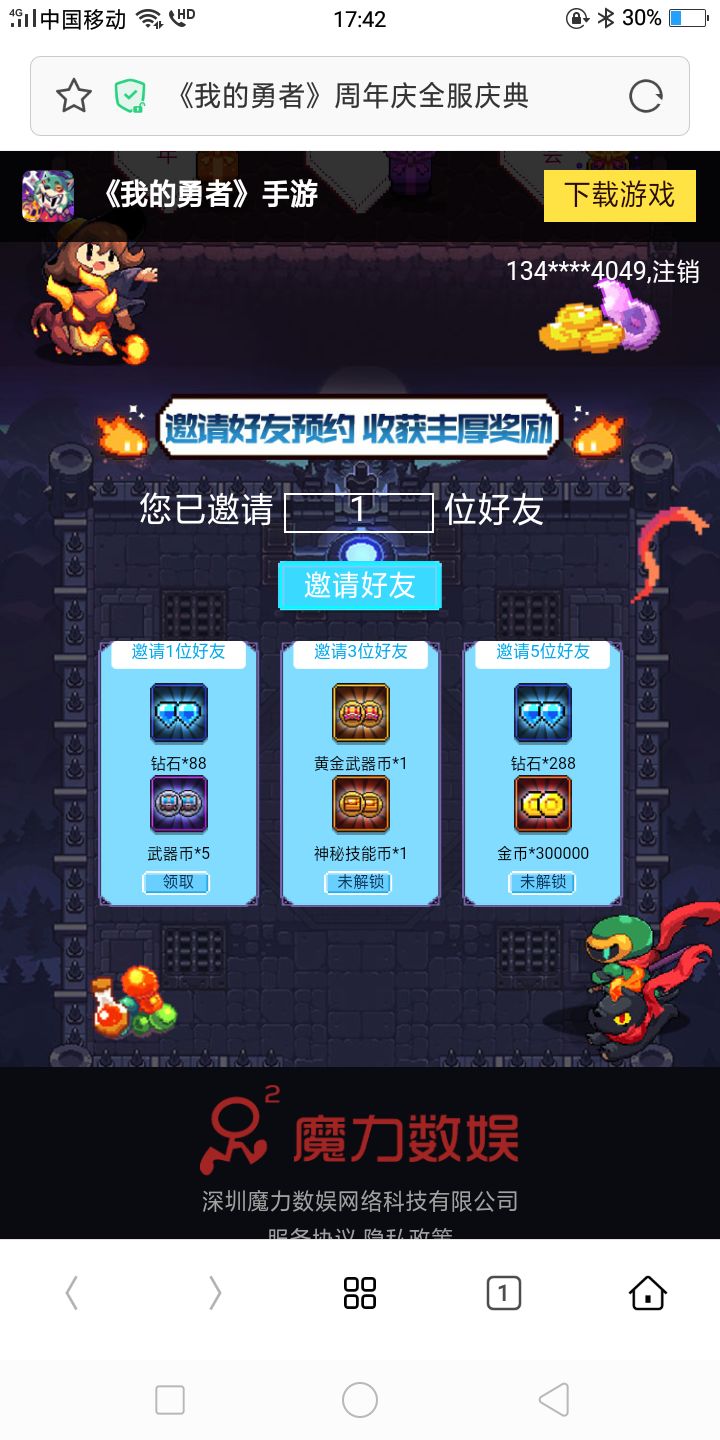 城中辗转又一秋,勇者再续月与酒。邀你共赴《我的勇者》周年佳宴→ https://myheroes.r2games.com.cn/anniversary/?invite_id=MGU5OGY0YmI1MzRiOGU3NDhjYTI2ZjJlMWUzZjE2N2Y=