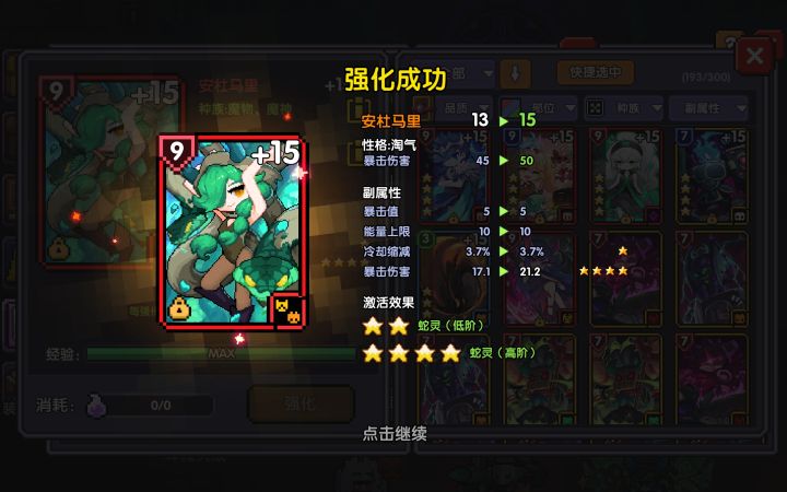 自己琢磨了一个赌卡止损办法,可能没啥用,但是心里能舒服一点,赌卡没有4个副属性我都是不赌的,直接升级用,因为四副属性15级再怎么样也有个二星,没四星最差都有个低保二星,而且真说四星四个副属性几率总是会更大的,除了滚兽直接拼人品,别的都是这么整得虽然我没有四星尴尬了。。。