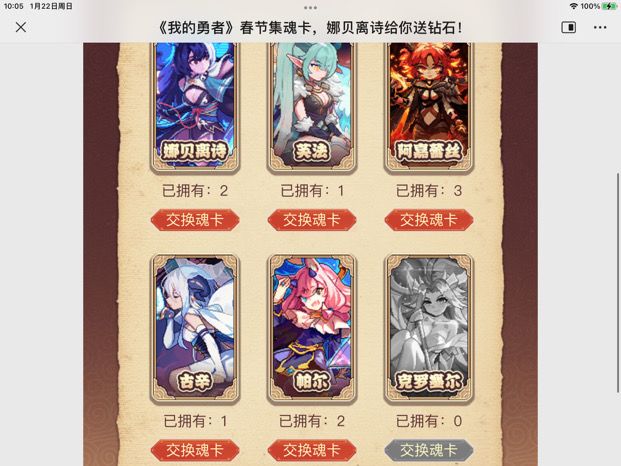 《我的勇者》春节集魂卡,娜贝离诗给你送钻石!我想用帕尔魂卡与你交换娜贝离诗魂卡,https://www.r2games.com.cn/act/card2023/1621369289?exchangeToken=MVVnusrPxweEJjqzEhHf
