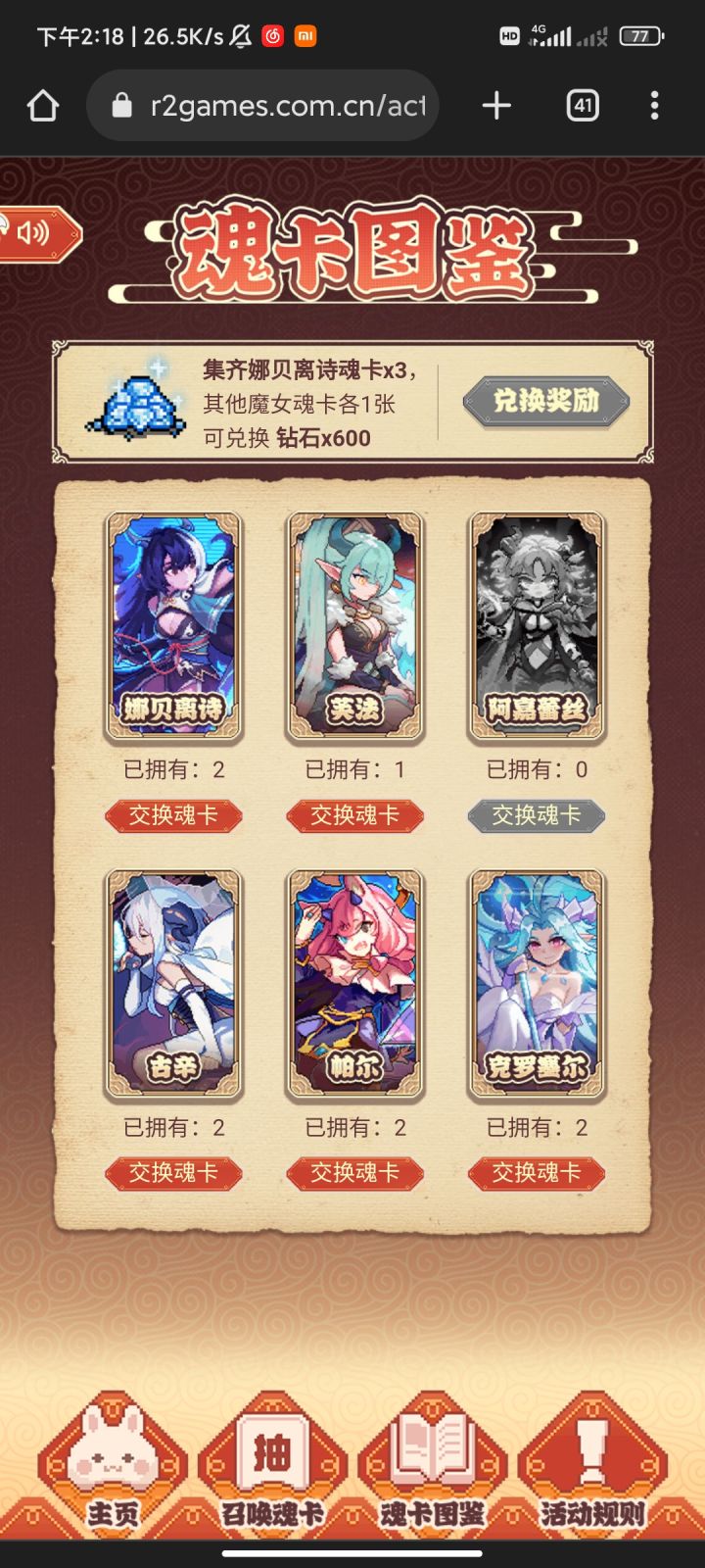 《我的勇者》春节集魂卡,娜贝离诗给你送钻石!我想用帕尔魂卡与你交换阿嘉蕾丝魂卡,https://www.r2games.com.cn/act/card2023/3419574818?exchangeToken=ctYMXIAbMdFwPfHHoOGv
